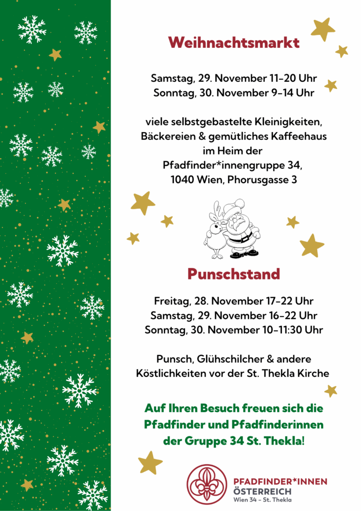 Auch dieses freuen sich die Wiener Gruppen, euch bei ihren Weihnachtsaktivitäten begrüßen zu dürfen! Von A Wie Adventmarkt bis Z wie Zimtstern ist für jede*n was dabei! Stöbert durch die einzelnen Einladungen oder werft einen Blick in die Gesamtübersicht. Mit dem Punschpass könnt ihr noch neue Punschstände kennenlernen und spart zudem noch Geld!
